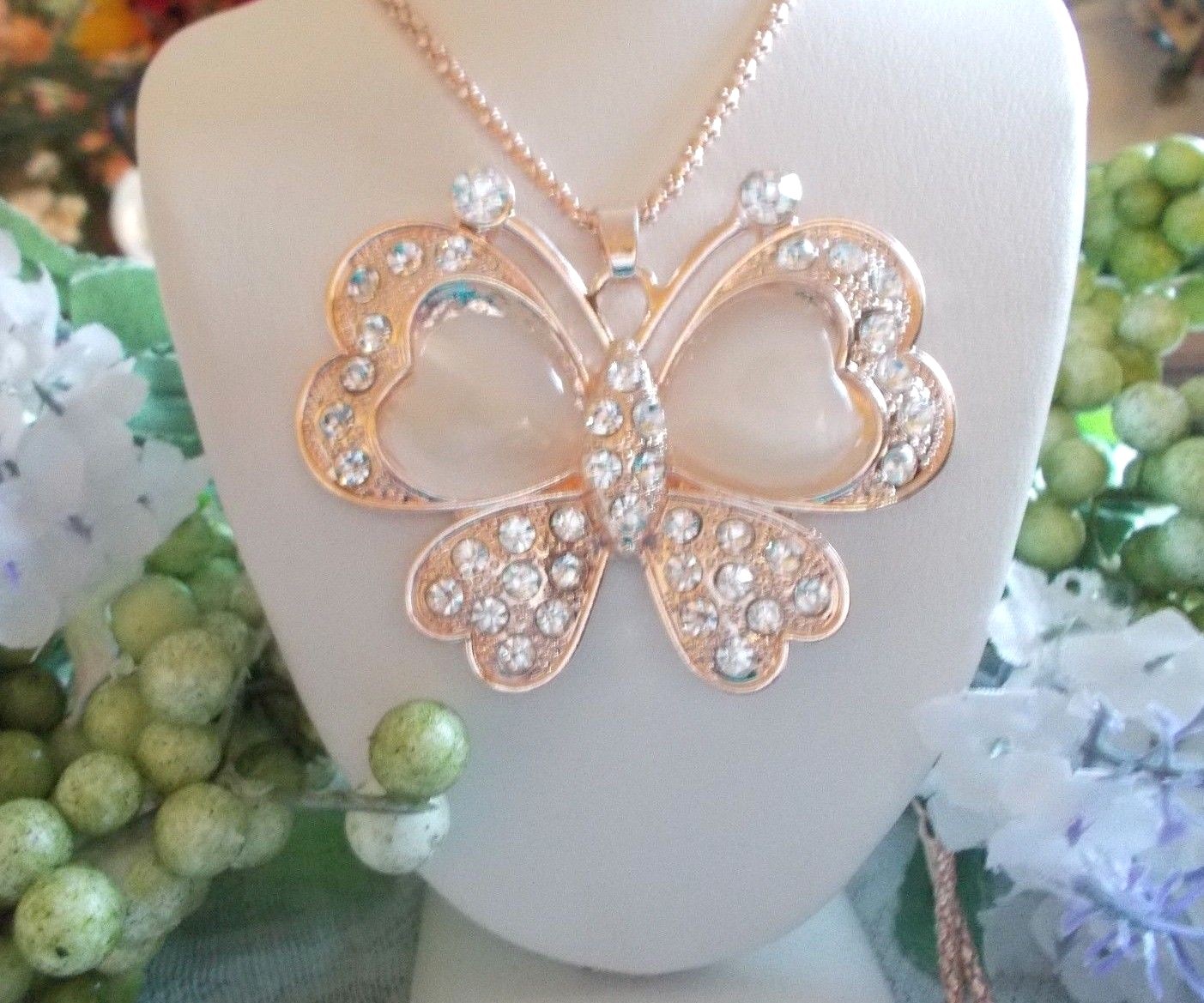BETSEY JOHNSON LARGE SPARKLING RHINESTONE BUTTERFLY PENDANT NECKLACE BROOCH