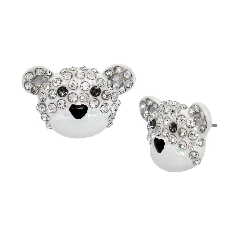 - TRENDY EARRINGS: Stud earrings featuring pearlized bear adorned with delicate stone accents. Earrings have a post back closure. Made from metal and glass.