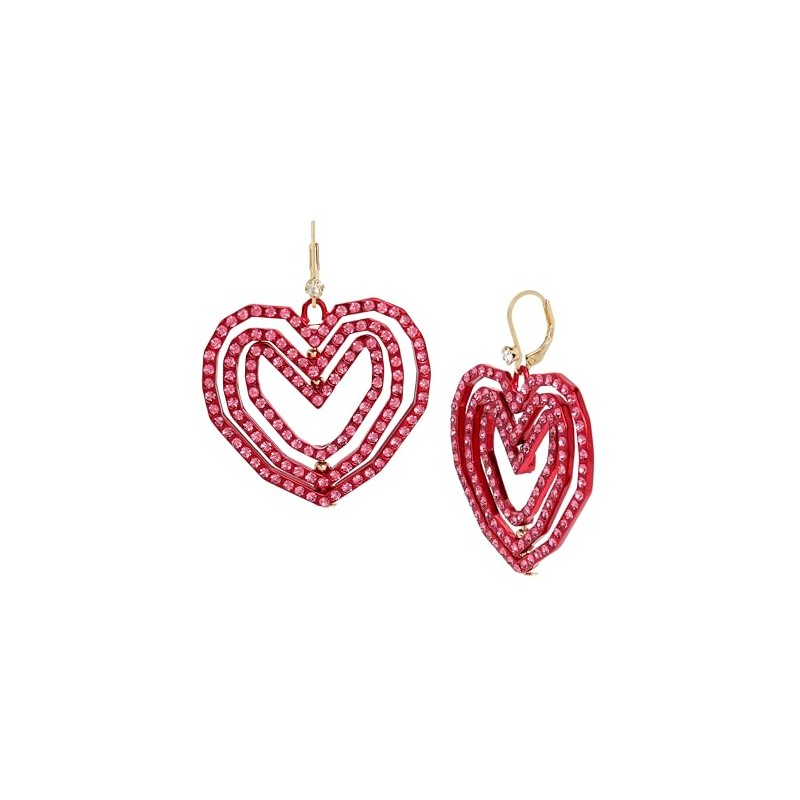 - TRENDY EARRINGS: Drop earrings featuring whimsical hearts adorned with glistening pavé. Earrings have a lever back closure. Made from metal, glass and enamel.