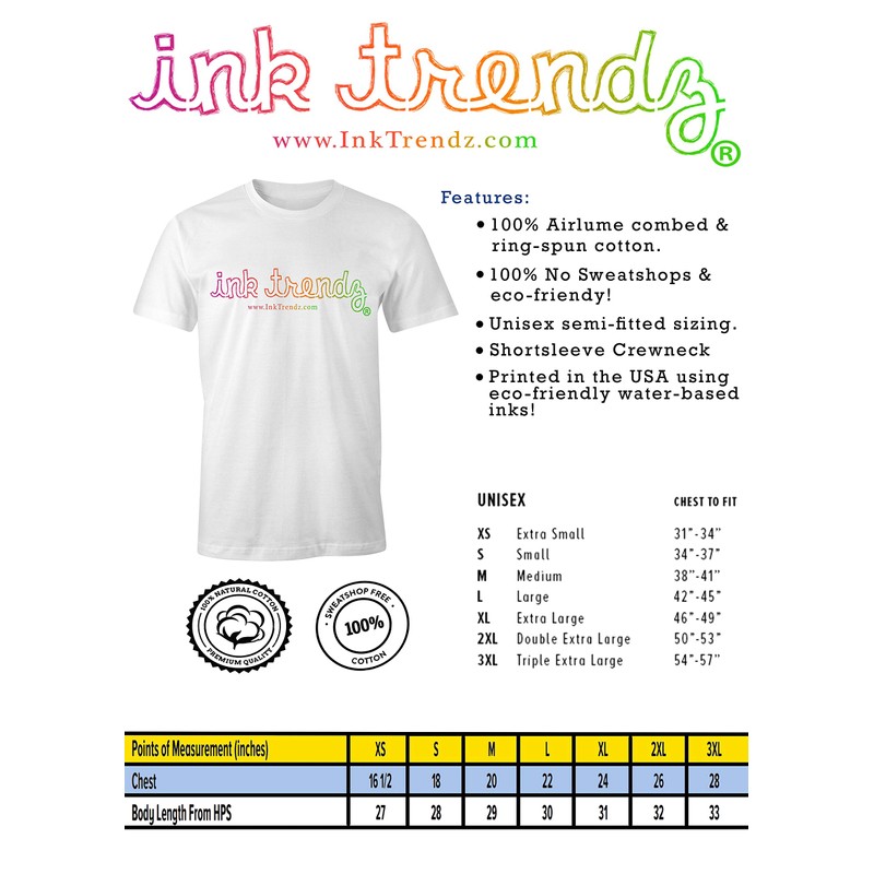- THE SHIRT: Our Shirts are 100% Ring-spun Cotton (Heather Shirts are 90% Cotton & 10% Polyester). A unisex fit with semifitted sizing! Our shirts are 100% Sweatshop free and printed in the USA using Eco-friendly water-based inks.