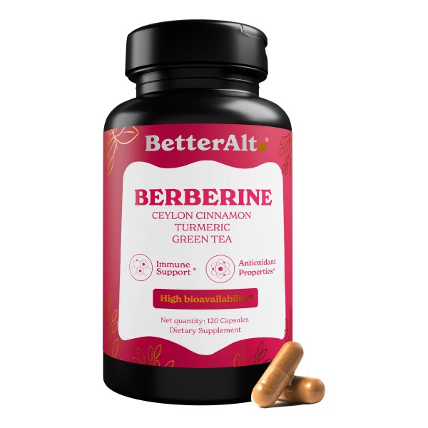 💛 ¡Controla tu salud metabólica de forma natural! 🌿 Las Better Alt Cápsulas de Berberina HCl 97% con hierbas son una potente fórmula natural diseñada para apoyar niveles saludables de azúcar en sangre, colesterol y metabolismo 🩺🔥. Cada cápsula contiene Berberina de alta pureza junto con extractos herbales que potencian su efecto 🧠💊. Ideal para personas con resistencia a la insulina, colesterol elevado o que desean mantener un peso saludable ⚖️. Con 120 cápsulas, ¡obtienes soporte por meses para sentirte mejor cada día! 🌟🧘♂️