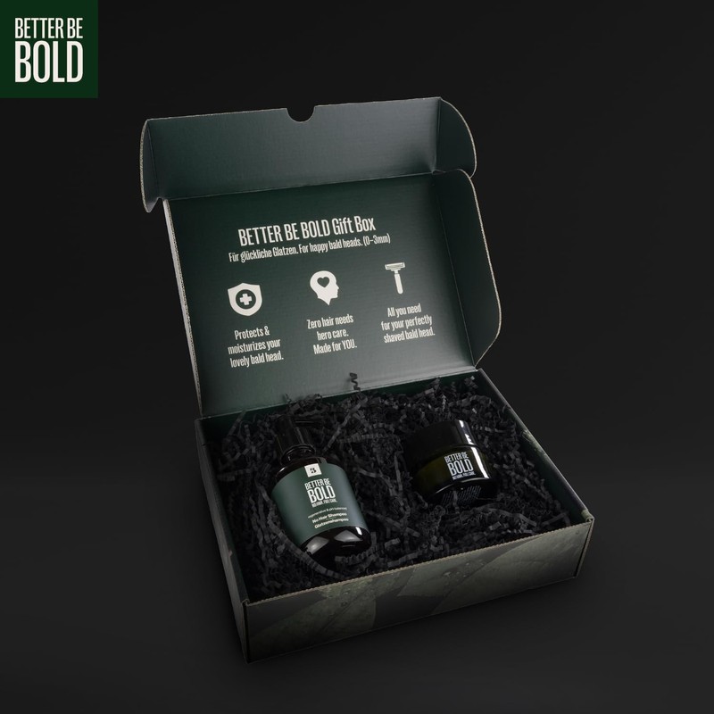 BETTER BE BOLD Gift box for happy baldness "Vin Diesel", matting baldness cream (0-3 mm) and nourishing baldness shampoo (0-6 mm), premium care for baldness wearers