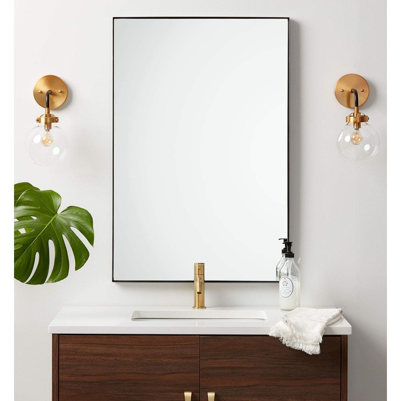 - Sleek, modern, rectangular design makes a statement over any bathroom vanity or on any wall in your home