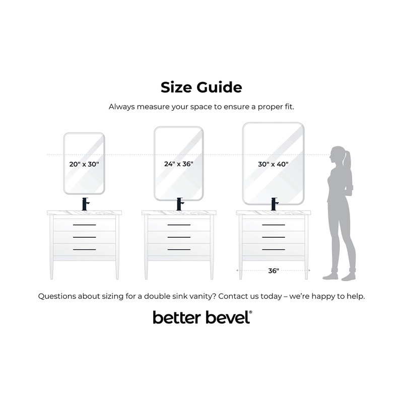 Better Bevel 30" x 40" Frameless Rounded Corner Rectangle Mirror | 1" Beveled Edge | Bathroom Wall Mirror