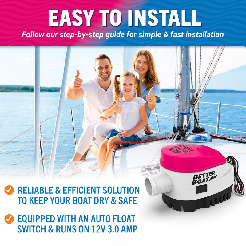 - SIMPLE FAST INSTALLATION: Install your boat bilge pump automatic solution quickly. Follow the step by step instructions to install the auto bilge pumps for boats 12v power with float switch built in. 3/4 or 1 1/8 bilge pump hose kit sold separately