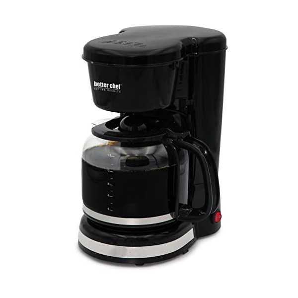 Better Chef Basic Coffee Maker | 12-Cup | Pause-N-Serve | Brushed Metal Trim (Black)