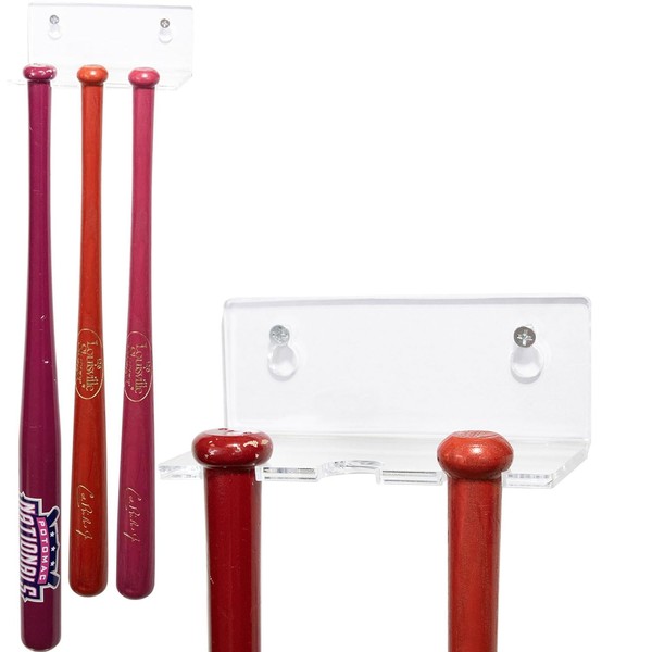 - High quality clear acrylic mini baseball bats display wall mount shelf; unique patented design.