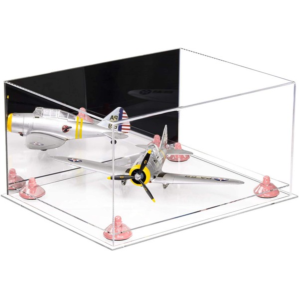 Better Display Cases Acrylic Versatile Display Case - Large Rectangle Box with Mirror Case, Pink Risers and Clear Base 15.25" x 12" x 8" (A026/V12)