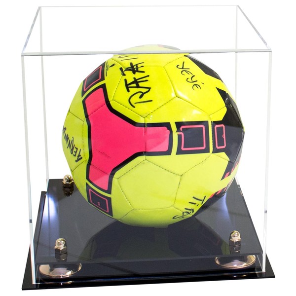 Better Display Cases Acrylic Display Case for Collectibles, Full Size Soccer Ball Display Case, Gold Risers & clear with black Base, Handcrafted Showcase Box.DIM;9.75"L x 9.75"W x 9.75"H. (A027-GR)