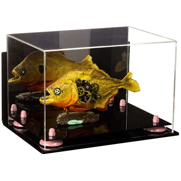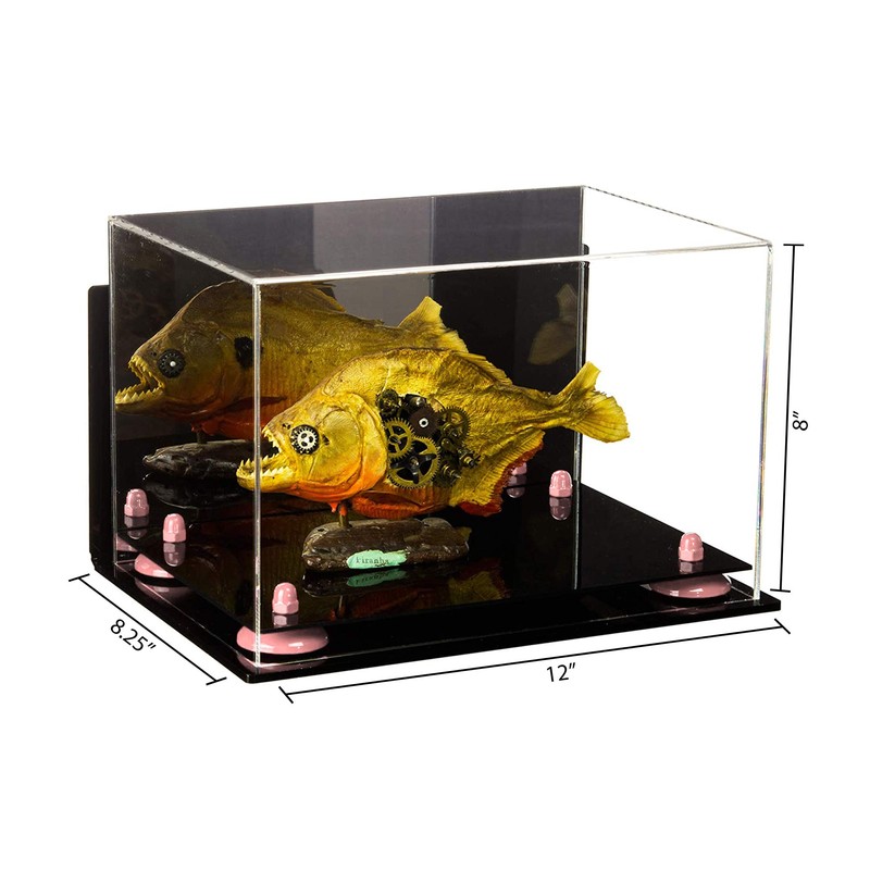 Better Display Cases Versatile Acrylic Display Case - Medium Rectangle Box with Mirror, Wall Mount and Pink Risers 12" x 8.25" x 8" (A004-PNR)