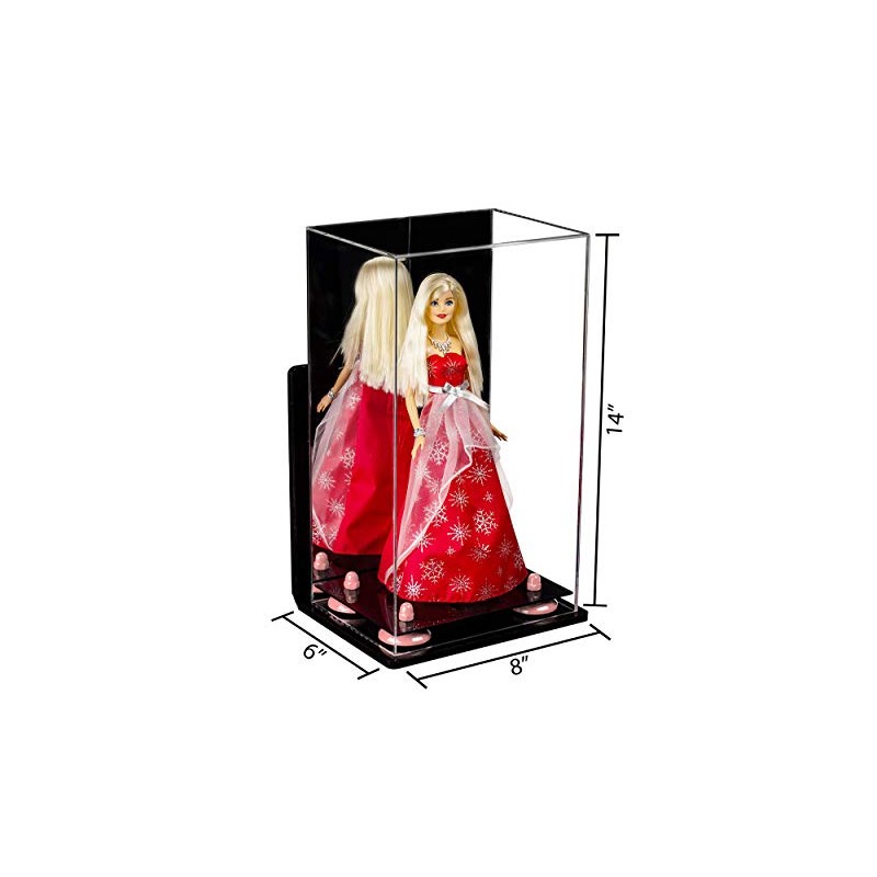 Better Display Cases Versatile Acrylic Display Case - Medium Rectangle Box with Mirror, Wall Mount and Pink Risers 8" x 6" x 14" (A092-PNR)