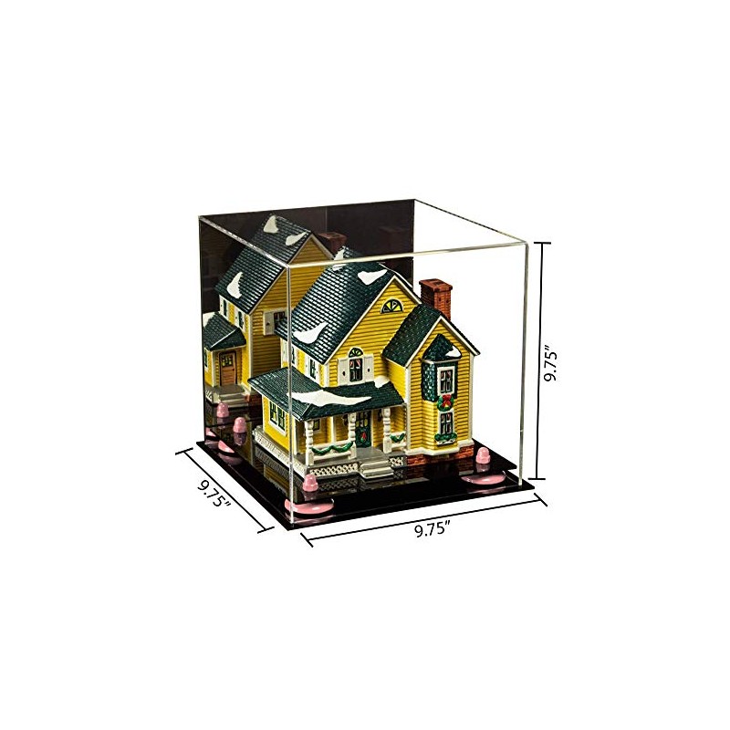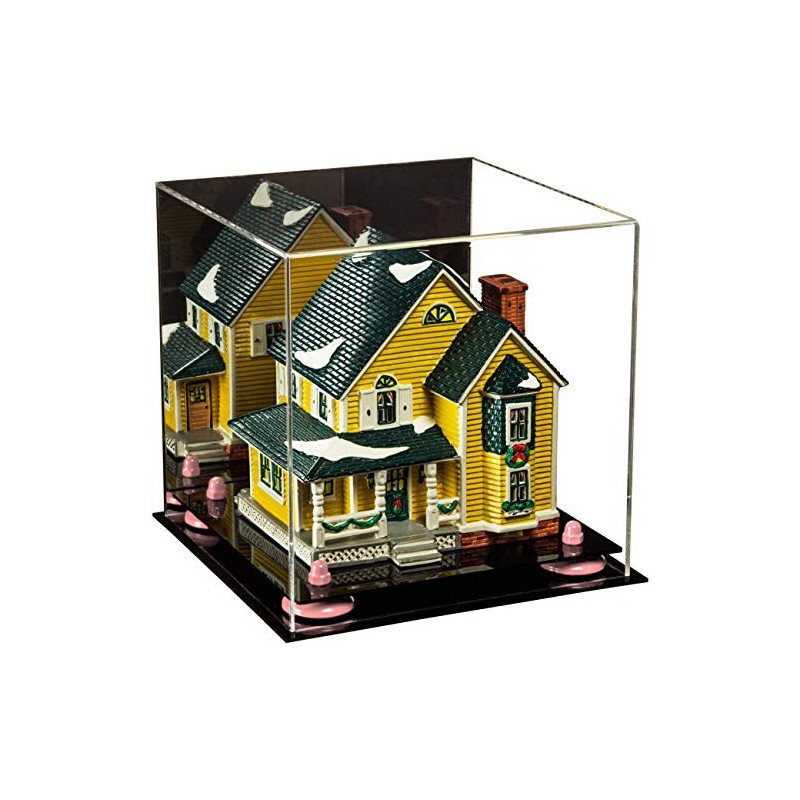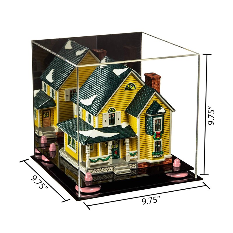 Better Display Cases Versatile Acrylic Display Case - Medium Square Box with Mirror, Pink Risers and Black Base 9.75" x 9.75" x 9.75" (V02)