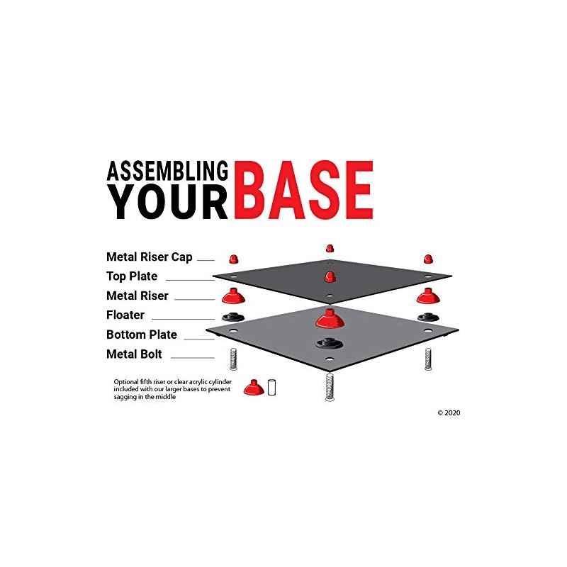 - CLEAR acrylic two-tiered base with light light blue metal risers, perfect for displaying any collectible