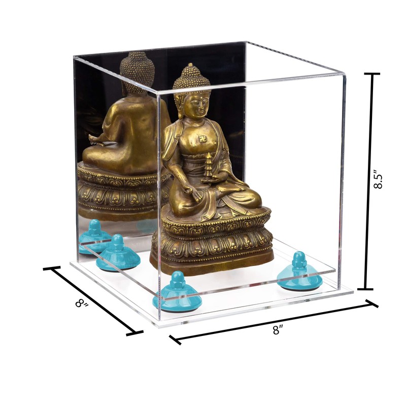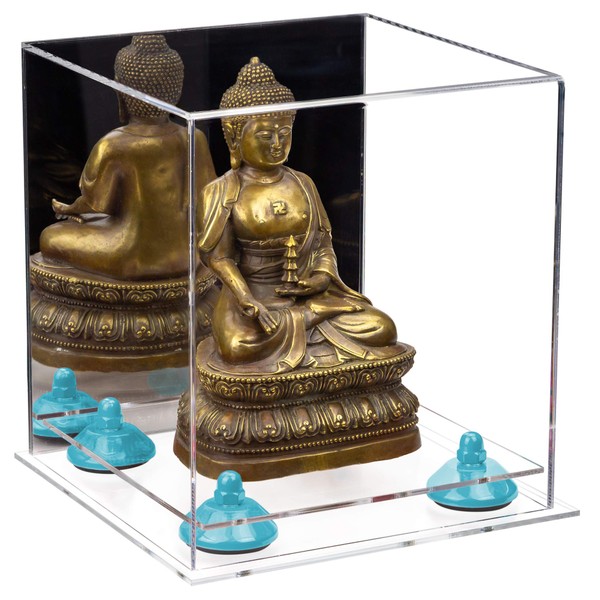 Better Display Cases Versatile Acrylic Display Case - Small Rectangle Box with Mirror, Light Blue Risers and Clear Base 8" x 8" x 8.5" (A015-BLR)