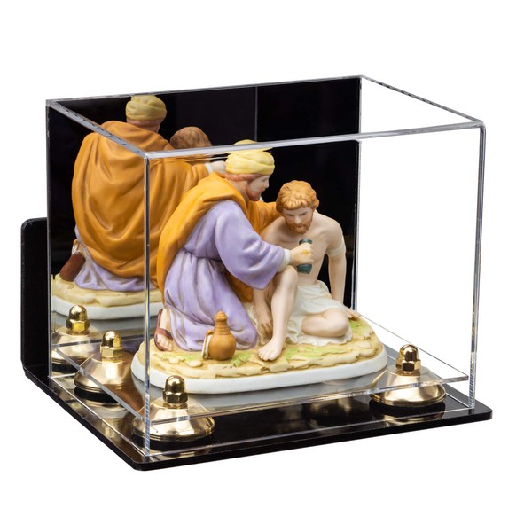 Better Display Cases Versatile Acrylic Display Case - Small Rectangle Box with Mirror, Wall Mount, Gold Risers and Clear Base 8.25" x 6" x 6.75" (A003-GR)