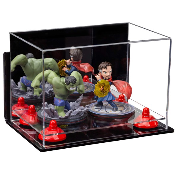 Better Display Cases Versatile Acrylic Display Case - Small Rectangle Box with Mirror, Wall Mount, Red Risers and Clear Base 9.5" x 6" x 6.5" (A005-RR)