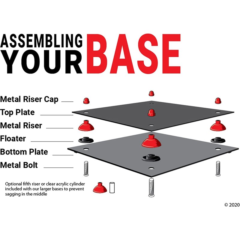 - SOLID JET BLACK acrylic two-tiered base with green metal risers, perfect for displaying any collectible