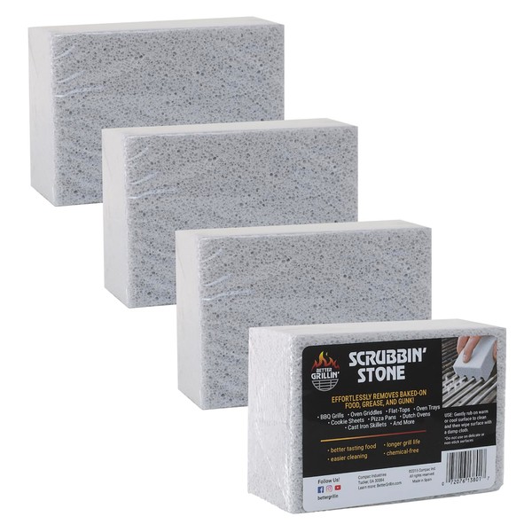 Better Grillin Scrubbin Stone Grill Cleaner-Scouring Brick/Barbecue Grill Brush/Barbecue Cleaner for BBQ, Griddle, 4pk