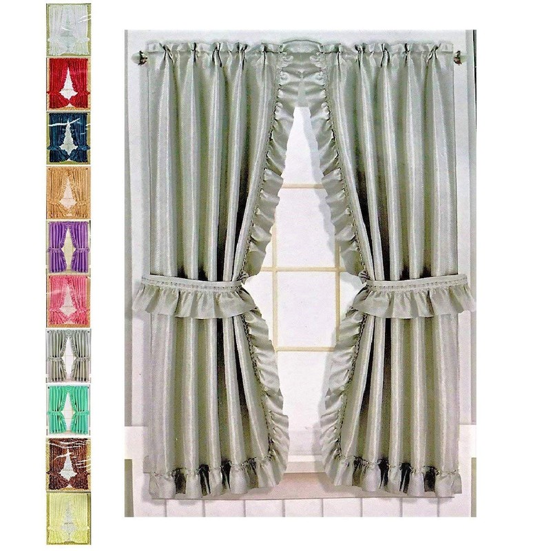 Better Home Ruffled Fabric Window Curtain Set, Mosaic - 2 Tie Backs - Adhesive Hooks (Grey)