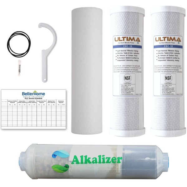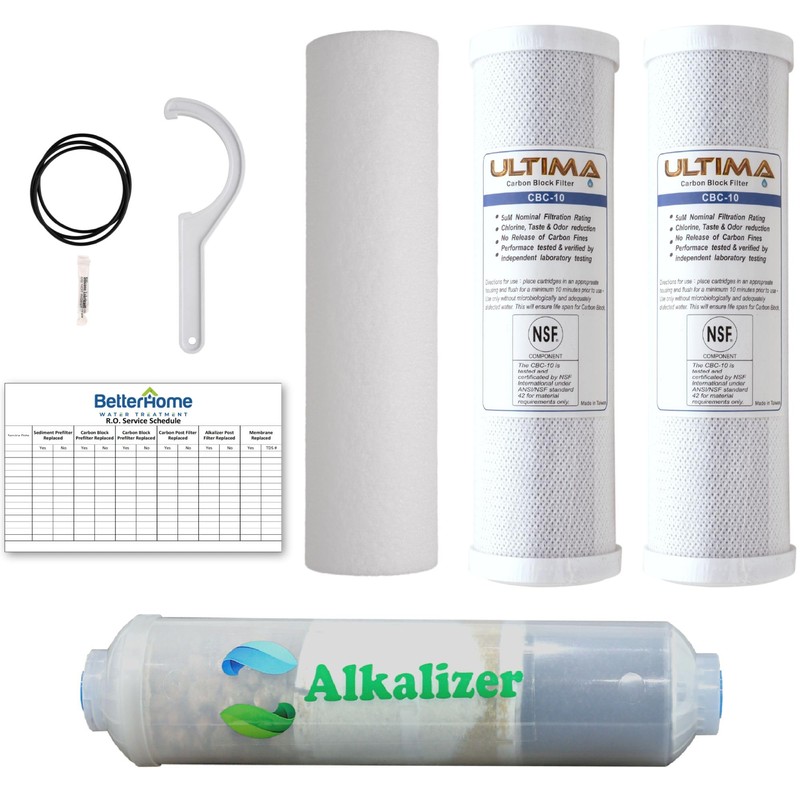 Ultima 7/VII 5 Stage Reverse Osmosis Filters with Alkalizer Post Filter, Reverse Osmosis Water-Filter Kit with Alkaline Water Filter for Greater PH Water. GRO-050 Compatible.