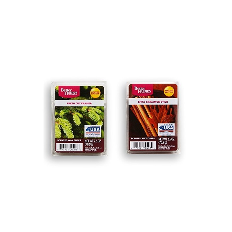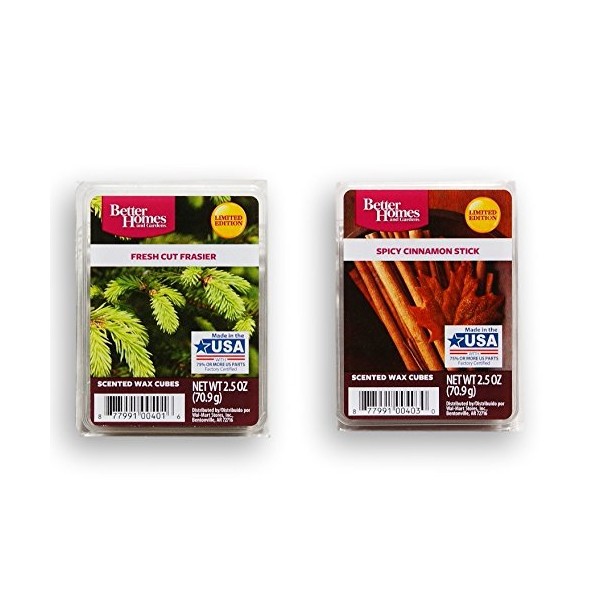 Better Homes and Gardens Holiday Themed Scented Wax Cubes Bundle - Fresh Cut Frasier and Spicy Cinnamon Stick