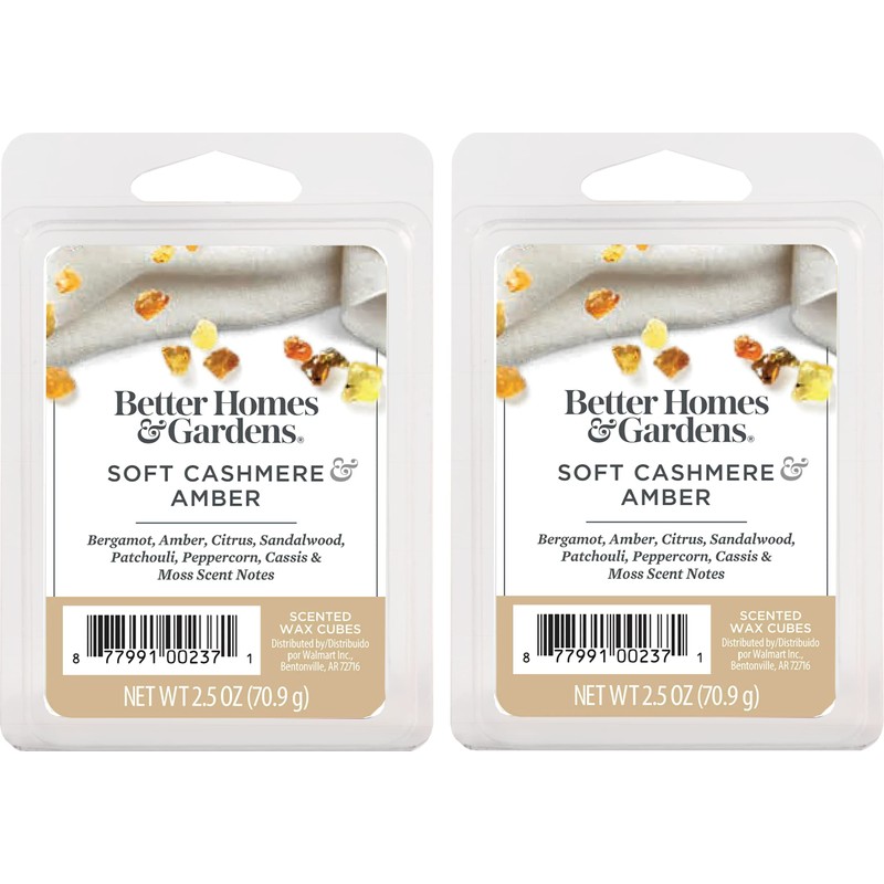 Better Homes and Gardens Scented Wax Cubes 2.5oz 2-Pack (Soft Cashmere Amber)