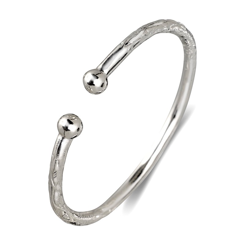 Better Jewelry Ball Solid .925 Sterling Silver Thick West Indian Bangle, 1 piece