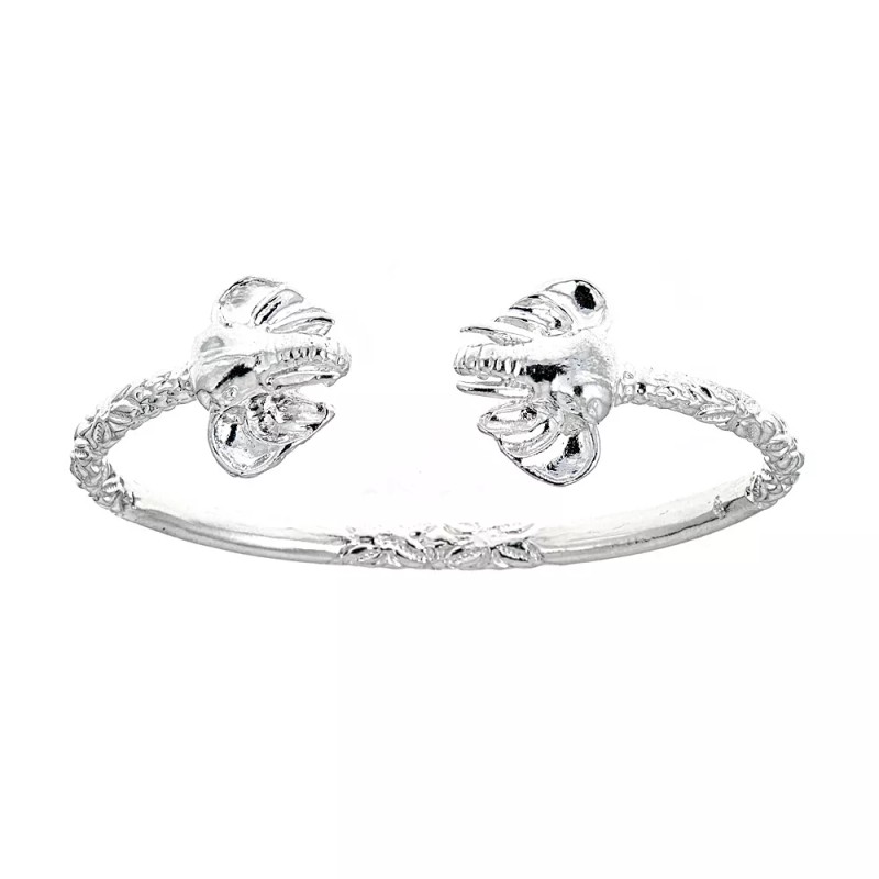 Better Jewelry Solid .925 Sterling Silver West Indian Bangle with Large Elephant Ends, 1 piece