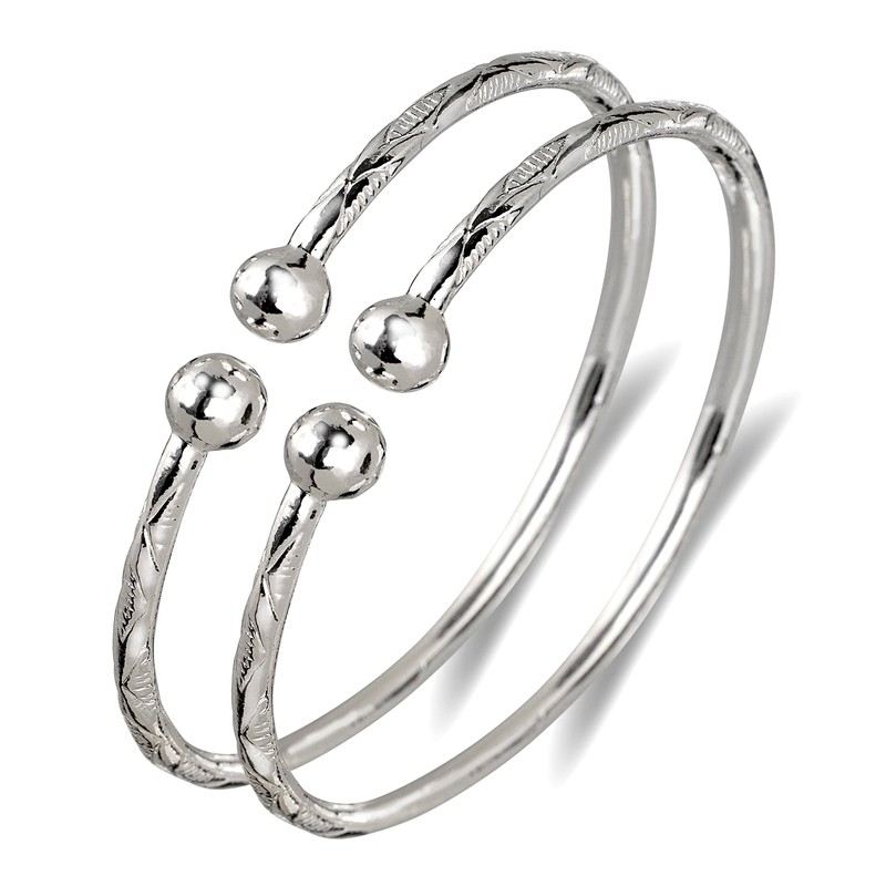 Better Jewelry Solid Ball .925 Sterling Silver West Indian Bangles (Pair) (MA...