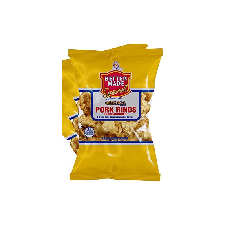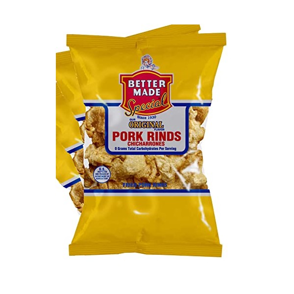 - Better Made Flavored Pork Rinds Chicharrones - 8-Pack - 2.5oz Bags - 1g Carbs - Keto Friendly (ORIGINAL)