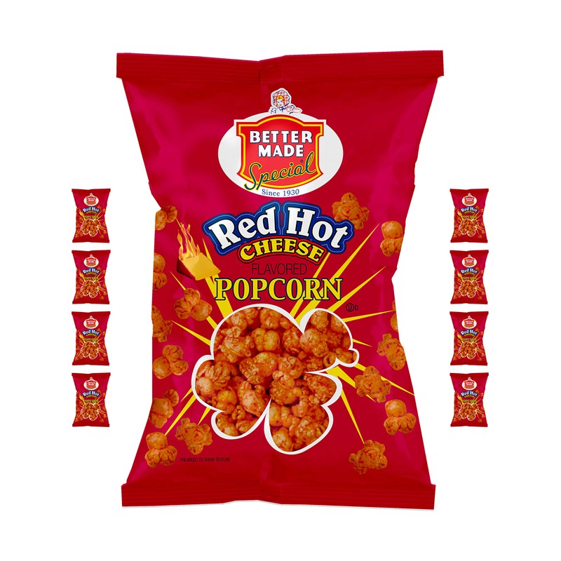 Better Made Special Popcorn (8) x Bags 2.5-2.75oz Each (Pack of 8) (HOT CHEESE) - Adult Bulk Snacks, Kids Lunch, Delicious Hot Cheese Flavorerd Popped Popcorn, Family Owned Since 1930 in Detroit