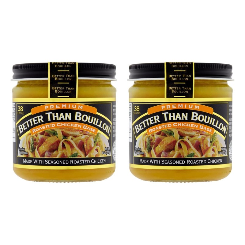 Better Than Bouillon Premium Roasted Chicken Base, Made with Seasoned Roasted Chicken, 38 Servings, Blendable Base for Added Flavor, 8-Ounce Jar (Pack of 2)
