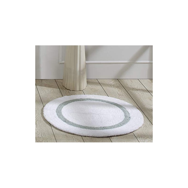 Better Trends Hotel Collection is Super Absorbent Reversible Double Sided Thick Bath Mat Rug Machine Washable 100% Cotton in Race Track Pattern, 30" Round, White & Blue