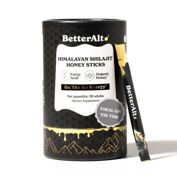 BetterAlt GOLD+ Shilajit Honey Sticks | Lab-Tested for Purity | 85 Minerals & Fulvic Acid for Energy & Stamina | 30 Packs | Dietary Supplement