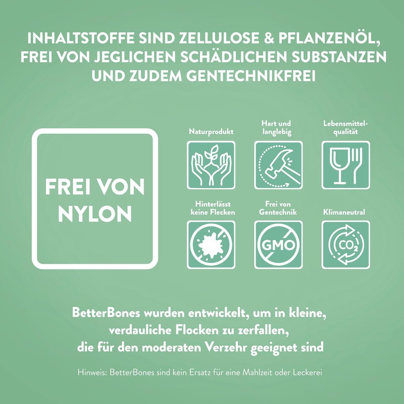 - Sustainably produced: we at BetterBone deliberately rely on climate-neutral production for chewing bones - from procurement to packaging, which underlines our commitment to ecological sustainability. Our contribution to the climate made in the EU. Made from GMO-free ingredients
