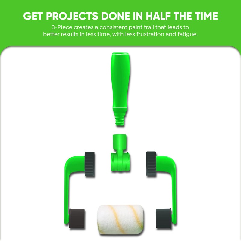 • GET PROJECTS DONE IN ½ THE TIME: 3-piece paint roller frame attaches to both sides of the roller cover, allowing painters to apply equal pressure. This creates a consistent paint trail that leads to better results in less time, with less frustration and fatigue. Great for professionals and DIY-ers!