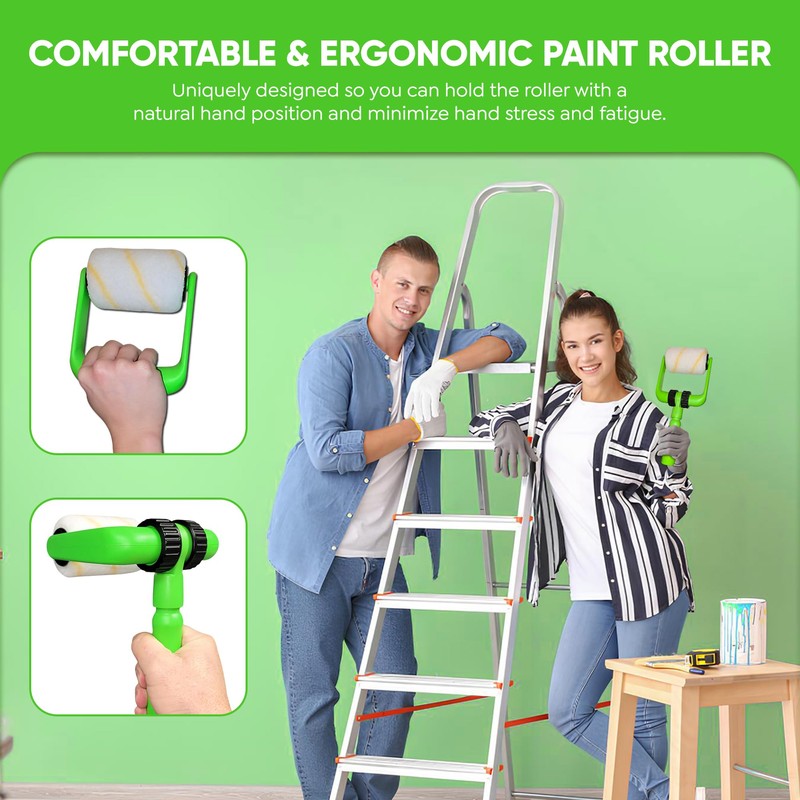 BetterGrip Ergonomic Paint Roller - 4 inch Paint Roller Kit with Extension Handle - Comfortable Grip to Minimize Hand Stress & Fatigue, Get Projects Done in 1/2 The Time