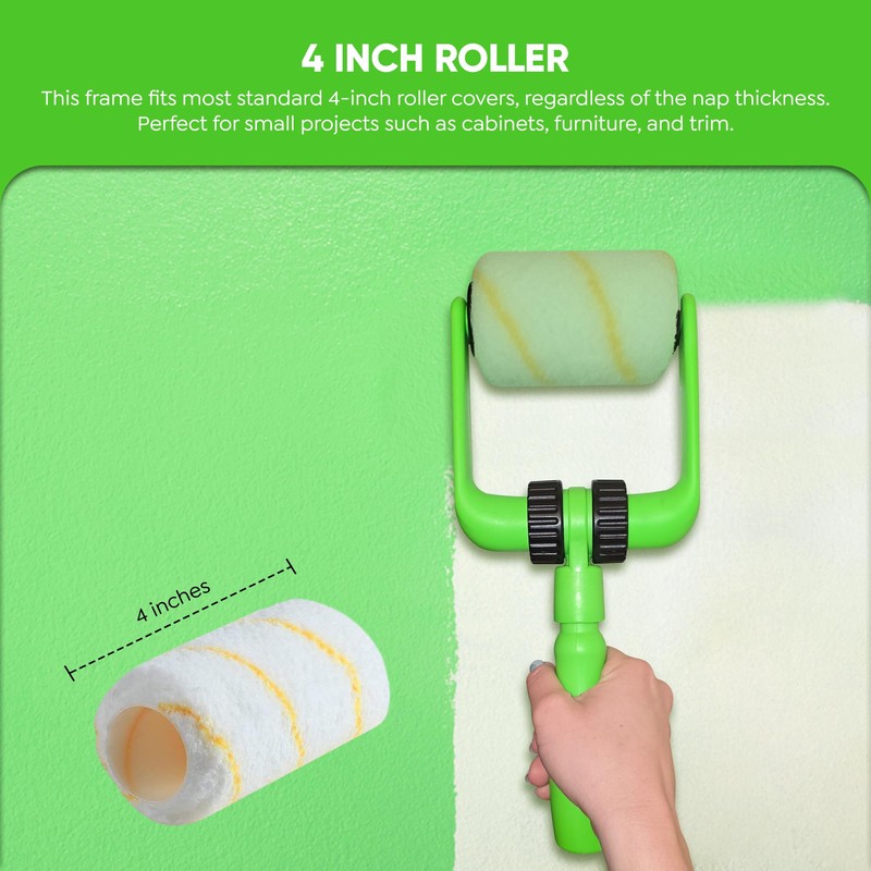 4 INCH ROLLER: This frame Fits most standard 4-inch roller covers, regardless of the nap thickness. Perfect for small projects such as cabinets, furniture, and trim. Adapter handles (sold separately) allow the 4 inch frame to be converted into 9 and 18 inch rollers.