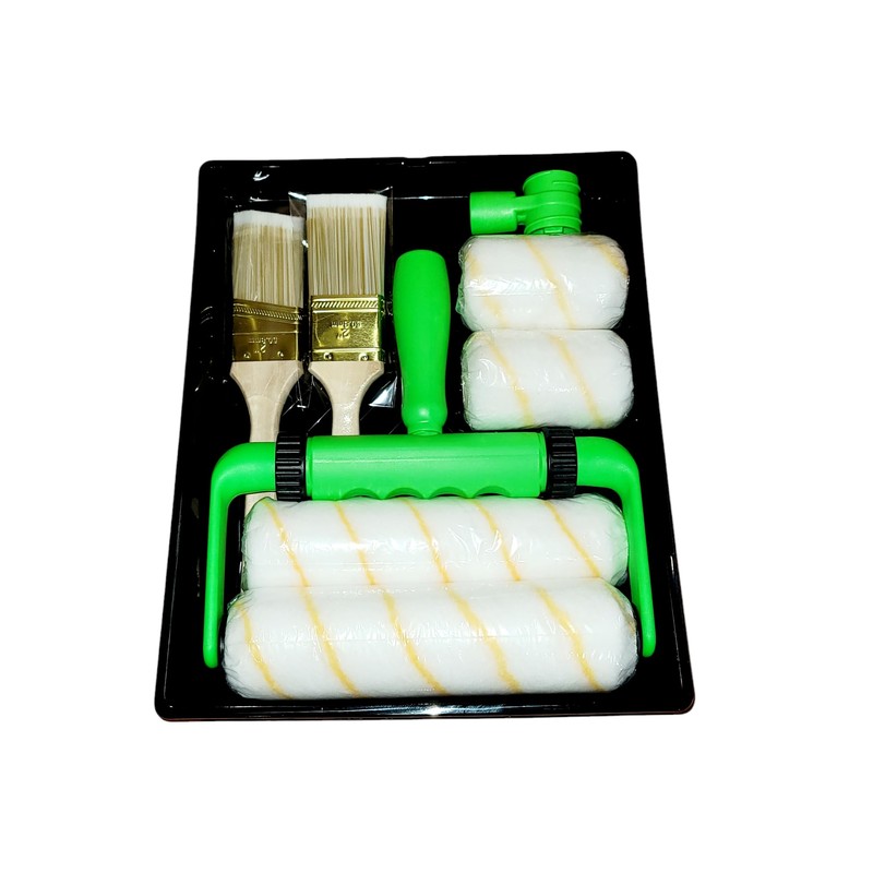 - 9 PIECE PROJECT KIT - Achieve professional painting results with this complete set! 1 Tray, 1 - 9" Better Grip Paint Roller Frame, 2 - 9" x 1/2" Roller Covers, 1 - 4" BetterGrip Adapter, 2 - 4" x 1/2" Roller Covers, 1 - Flat Sash Brush and 1 - Angle Sash Brush.