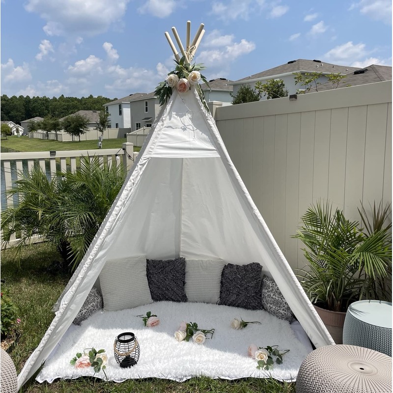 - MUTI-FUNCTION PLAY TENT - This play teepee tent can be used as a reading corner, a toy area, an indoor camp, or a cozy space to take a nap. The white teepee tent for kids has a blank surface so you can unleash their creativity and design patterns freely! There is no doubt that you will be happy to spend hours in the kids teepee tents.