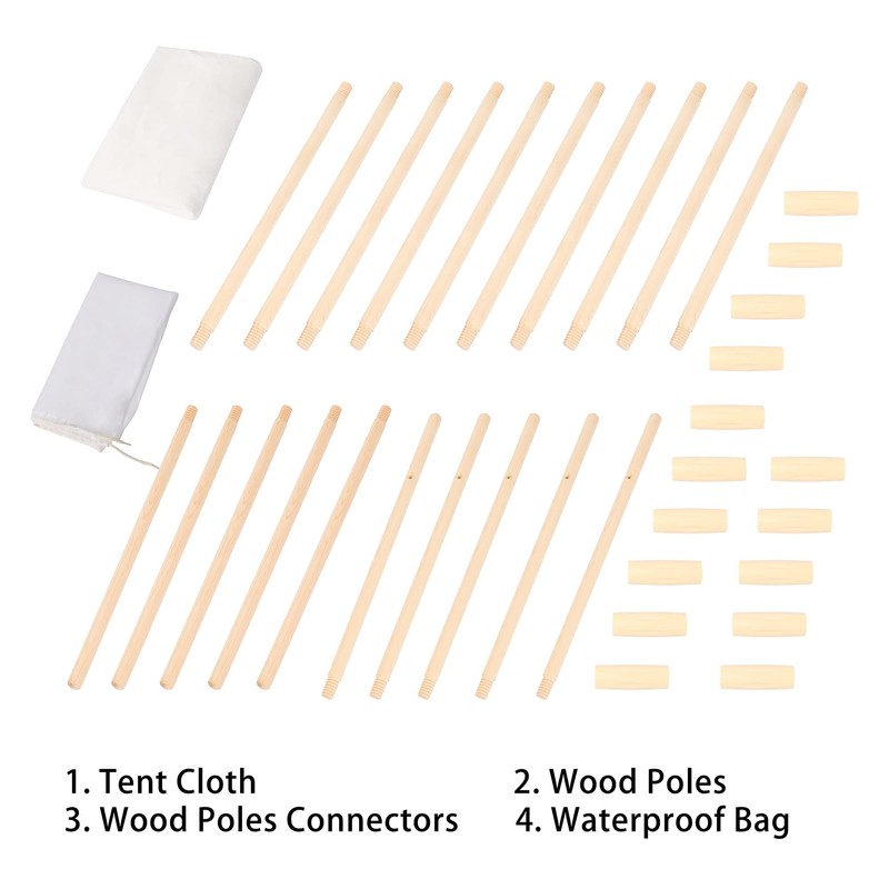 - COMFORT & SAFETY - Unlike other poor poly cotton tents, our play tent is made of more thicker white 100% cotton canvas fabric with smooth surface and good shading effect. In addition, The wooden pole is upgraded to a thickened and smooth pine pole, making the overall structure more stable and free of chemical odors and harmful substances.