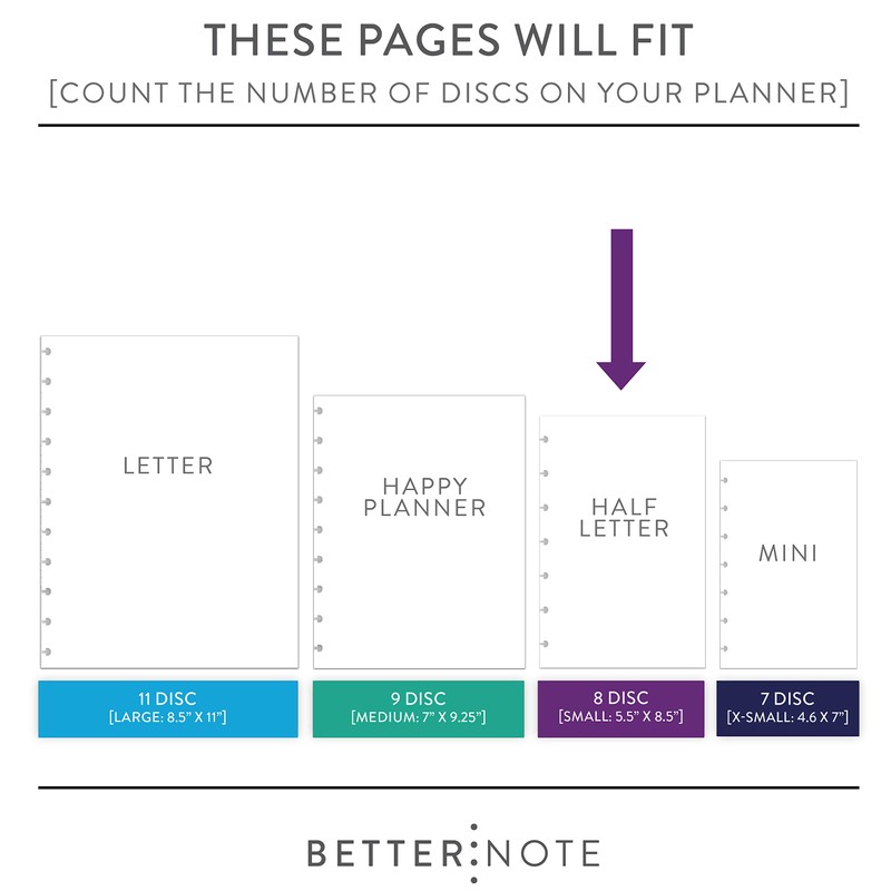 - COMPATIBLE: BetterNote pages, dividers, and covers are compatible with other disc systems like The Happy Planner, Levenger Circa, ARC, TUL, etc. Please note: Dividers, covers, and other pages do not come with this set but can be purchased separately.