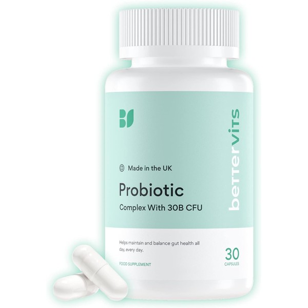 BetterVits Probiotic Complex | 30B CFU | Gut Health | Digestion | Bloating | IBS | with Prebiotic