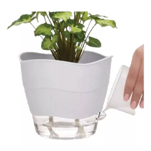 Olvídate de regar tus plantas diariamente con la Maceta Riega Fácil. Se trata de una maceta que tiene un contenedor inferior del cual, la planta absorbe el agua por medio de unos cordones. Úsalo también para hidratar aquellas plantas que sus hojas no pueden estar en contacto con el agua, como las Violetas.