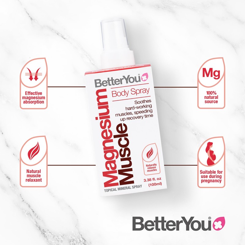 BetterYou Magnesium Muscle Body Spray - Muscle Relief Spray - Magnesium, Arnica, and Lemon Oil - Gentle Heat for Muscle and Joint Recovery - 3.38 oz