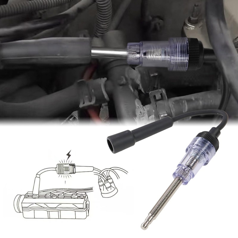 - SIZE - Ignition coil tester size is 2.28 inch metal interface, 4.44 inch shaft/lamp housing, 6.53 inch sheath/cable; This automotive coil tester is nickel plated shaft, Double ended flexible tool with internal bulb lasts for several years and is replaced by a transparent housing.