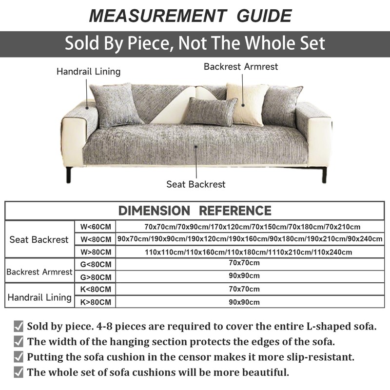 - Note: Our sofa cover is modular, each size you choose is a module and each module must be purchased separately. It is recommended to choose a larger size, the additional part of the sofa cover can be inserted into the gap and the cover does not fall off easily.