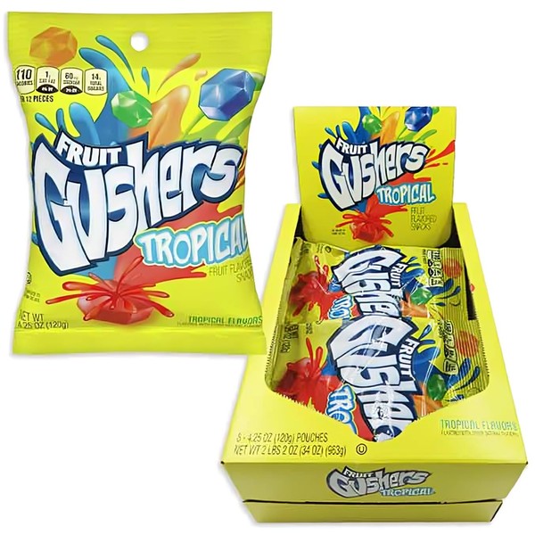 Betty Crocker Gushers Fruit Flavored Snacks, Tropical, Gluten Free, 4.25 oz, 8 ct