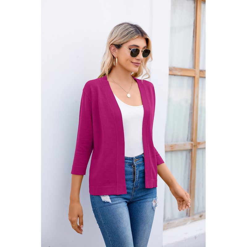 Layer up for those chilly nights ahead with the soft women's knit cardigan! This elegant open front cardigan sweater features a cropped design and classic 3/4 sleeve with drop shoulders. The lightweight cardigan ends at soft ribbed cuffs and hem. Classy vintage shrug bolero, perfect to wear over a party dress, t-shirt or jeans as a comfortable cardigan day or night.