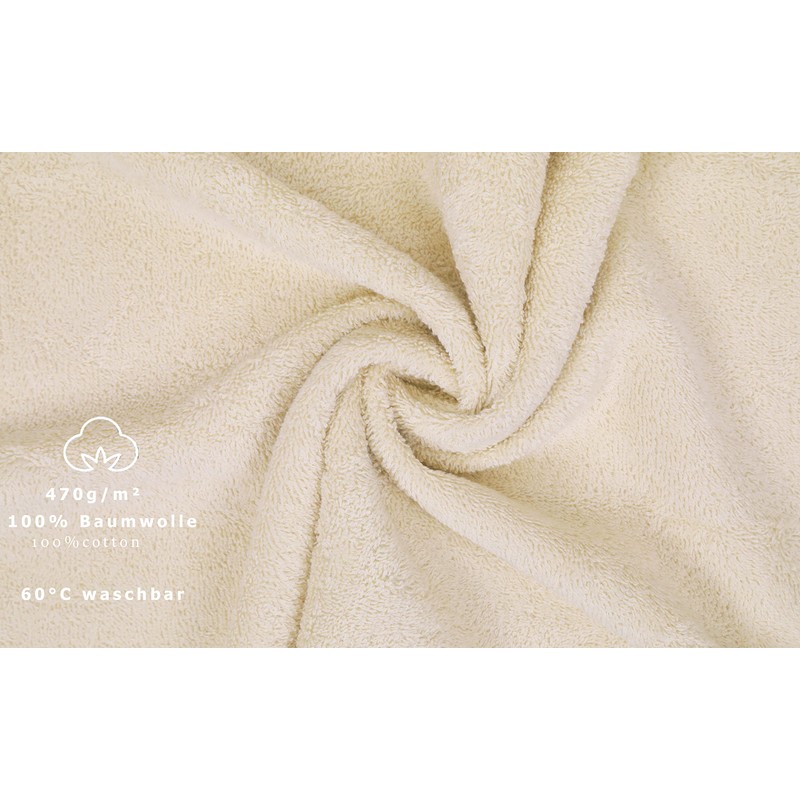 - The guest towel / flannel have a double border, a towel loop and a quality of 470 g/m².